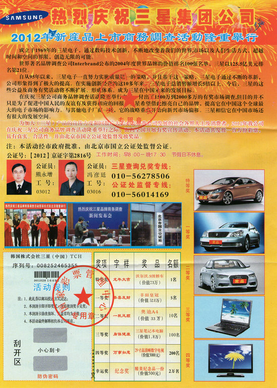 下面是一幫騙子寄給我的信,總共給我寄了4封,而且4封信都一樣,每封里,有2張獎(jiǎng)票,共計(jì)8張(這騙子明顯是缺心眼,腦子進(jìn)水了。居然給我寄這么多)。結(jié)果是,我中了8輛汽車。呵呵,這個(gè)騙子文化水平比較低,獎(jiǎng)票上面,居然是“國家彩票管理中心”的章,連“中國”兩個(gè)字都沒有。